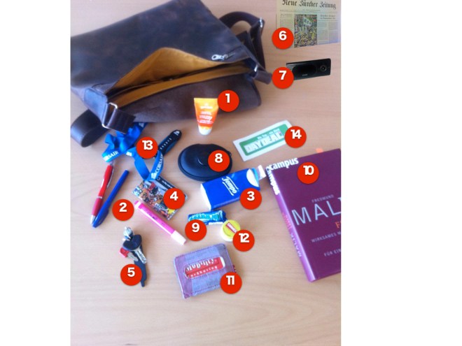 @treimannch hat auf dem Firmenblog heute darüber berichtet, was er denn so mit sich rumträgt, den ganzen langen Tag und hat angefragt, was ich denn so vergleichbares in meiner Tasche mit mir rumtrage. Fand ich interessant und kippte das Ding mal aus. Da kam wenig Geekiges zum Vorschein, aber vielleicht für manchen was Überraschendes.